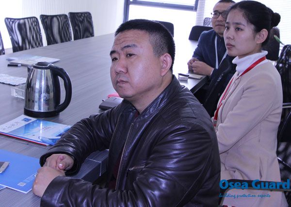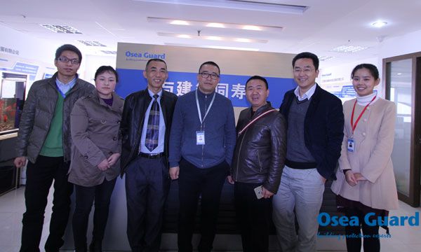 2016年3月7日上午,海南省防水協(xié)會會長孫慶生、常務副會長孫彥濤、江蘇鹽城市康泰建筑灌漿技術有限公司高工陳森森考察團一行蒞臨歐西建科南京總部進行參觀考察,歐西建科王洪波總經(jīng)理、郭紅副總經(jīng)理進行了熱情接待并陪同座談。