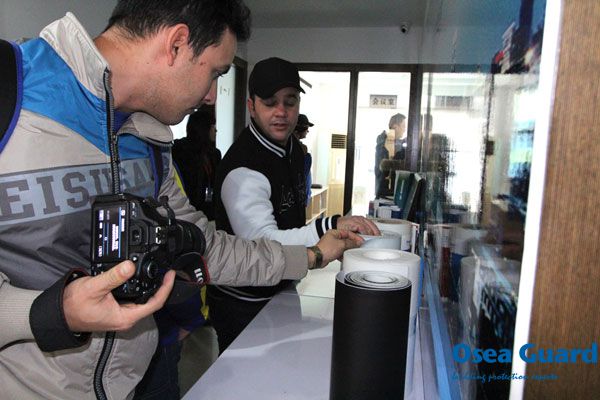 上午八點,吳濤主任一行首先參觀考察了歐西建科現(xiàn)在施工工地——句容北部新城項目,在現(xiàn)場項目經(jīng)理的帶領下,留學生深入了解了項目現(xiàn)場防水材料施工方法和步驟,實地體驗了施工工具使用。