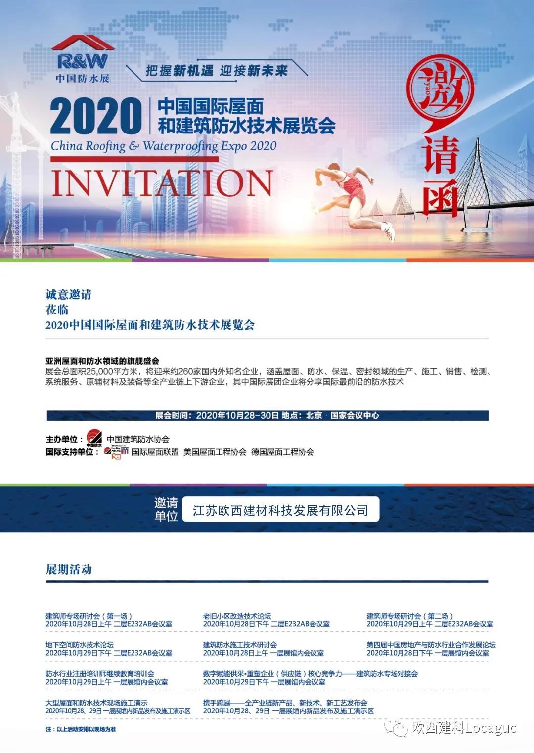歐西建科此次展位號(hào)為:B區(qū)406展位,歡迎各界朋友前來(lái)參觀交流,也預(yù)祝2020中國(guó)防水展圓滿成功,希望本屆展會(huì)向社會(huì)展示防水行業(yè)疫情防控、復(fù)工復(fù)產(chǎn)及行業(yè)發(fā)展取得的顯著成效,呈現(xiàn)后疫情時(shí)期防水行業(yè)勇于面對(duì)困難、不斷實(shí)現(xiàn)突破的整體風(fēng)貌,助力企業(yè)把握新機(jī)遇,迎接新未來(lái)!