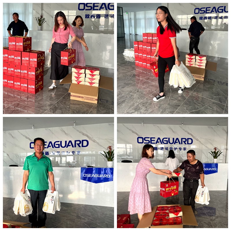 “八月十五月兒圓,金桂盛開伴餅香"一年一度的中秋佳節(jié)即將來臨,為了讓大家度過一個美滿幸福的中秋佳節(jié),感受到節(jié)日喜慶和溫馨的氣氛,同時也為了感謝大家辛勤的工作。歐西盾防水為全體員工發(fā)放中秋福利!