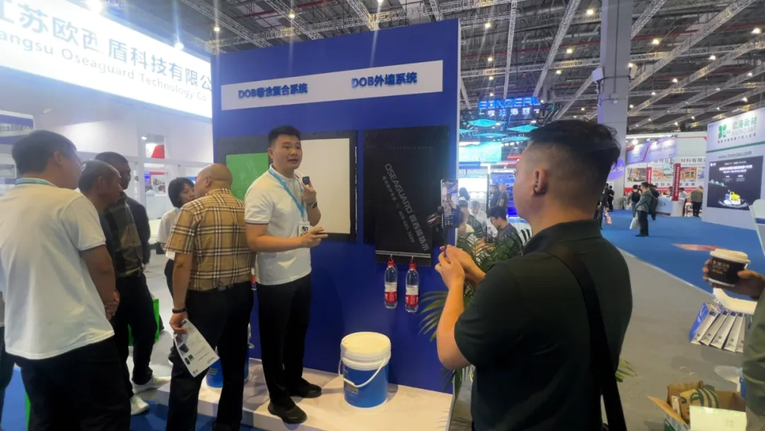 行業(yè)著名的大隱于水先生蒞臨歐西盾防水展位。市場總監(jiān)丁彥臻對公司的金屬屋面防水系統(tǒng)及新型產(chǎn)品DOB快粘持粘涂料進行講解,現(xiàn)場氛圍極其熱烈,分享內(nèi)容極具含金量。